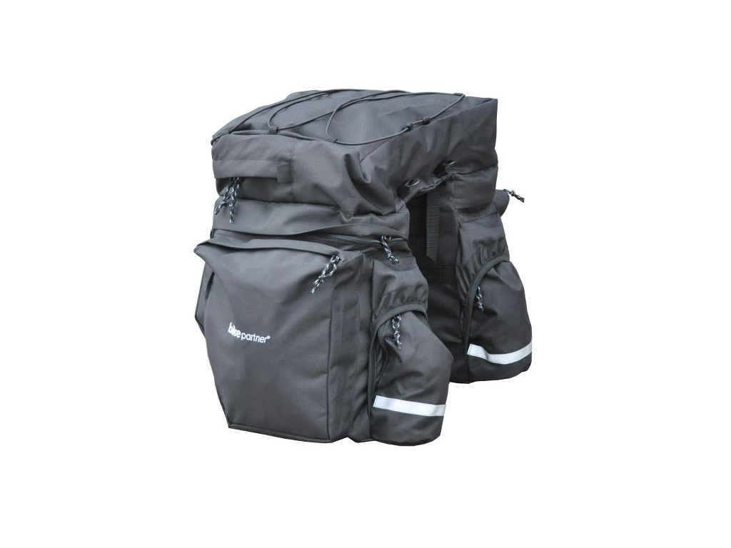 BikePartner – Caroline – Cykeltaske Til Bagagebærer -Sort – 3 Delt 40 Liter